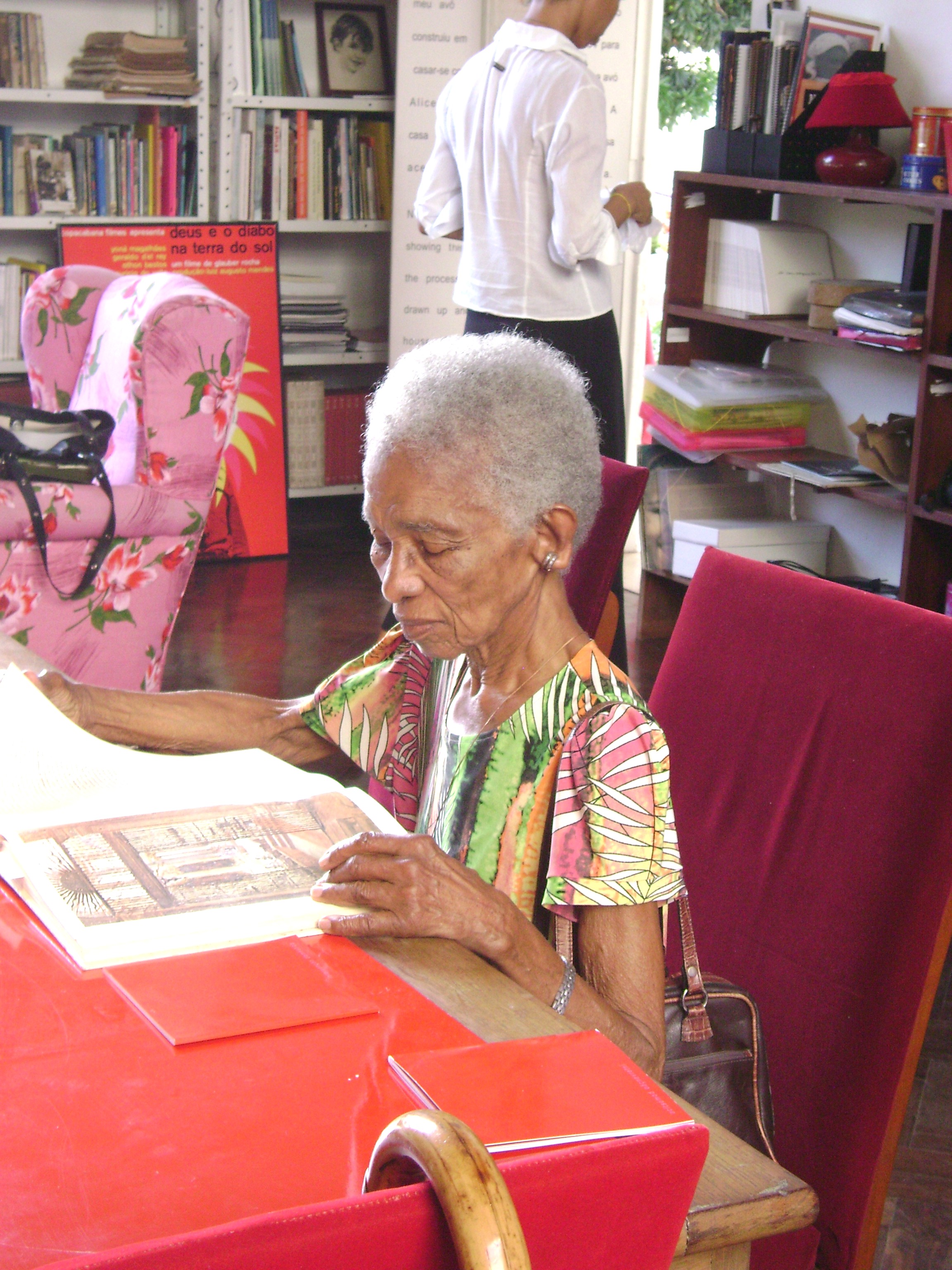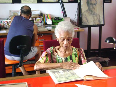 A exposição intervenção doméstica recebeu nesta quarta-feira (20) a grata visita de Bernadette Cruz, 92 anos, filha de Philomeno Cruz, amigo e colega de Presciliano desde a infância até a Escola de Belas Artes, onde foi professor. Bernadette, afilhada de Presciliano, ficou bastante emocionada ao relembrar histórias do passado e amigos das fotografias.
